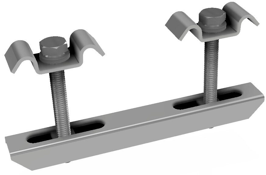 Die Doppelklemmenbefestigung verbindet nebeneinanderliegende Gitterroste an