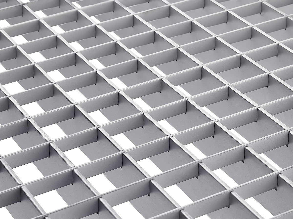 Pressroste bestehen aus vorgefertigten Querstäben aus Flachmaterial, die in speziell geschlitzte Tragstäbe mit hohem Pressdruck eingepresst werden.